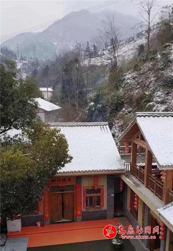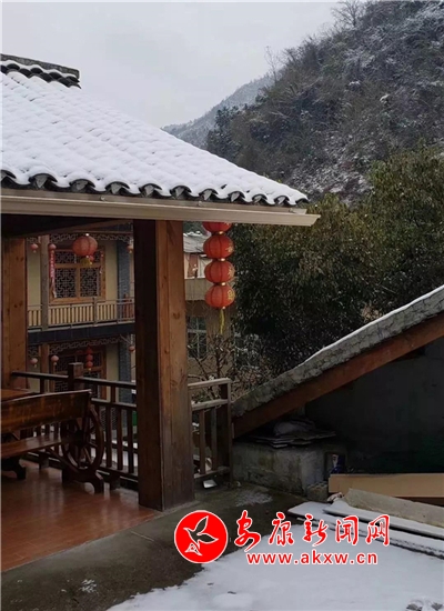 紅屋檐、紅格窗、紅木門、紅楹聯(lián)、紅地毯,還有那懸掛在屋頂上隨風舞動的紅燈籠,在瑟瑟寒風和茫茫白雪中,才顯其妖嬈展姿。這里,是紅與白色澤、熱與冷色溫的匯聚。紅,是一枝梅,是數(shù)盞燈,是萬家火,是山里人熱騰騰好日子的主色調……