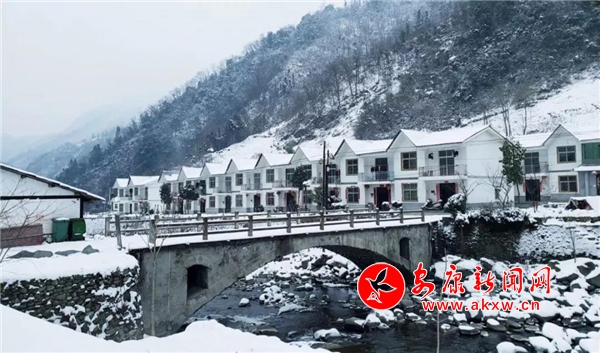愈往深山走去,愈是銀裝素裹。發(fā)如雪,天作襯。色彩在這里失去了顏色,整個世界只剩下黑與白的構圖。山澗中露出的黑巖,連綿著,將青絲的線條起伏蜿蜒地勾勒而出。山腳下一排排整齊的村民安置房,已顯出冬眠酣睡的樣子。樹林里帶著一層朦朧,在群山連綿中起伏著,為這雪天獻上了一幅絕美的水墨畫卷,也更增加了幾分神秘。