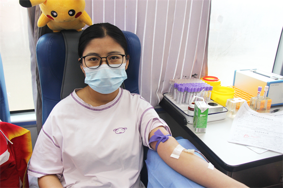 剛滿18歲的林生瑤是護理專業(yè)的學生,第一次獻血的她顯得稍微有點拘謹?!拔移綍r喜歡跑跑步,身體挺好,剛才上車前很緊張,現(xiàn)在好多了,獻血挺好的,等會兒回去我也讓舍友過來?!绷稚庌哿宿垲^發(fā)笑著說。