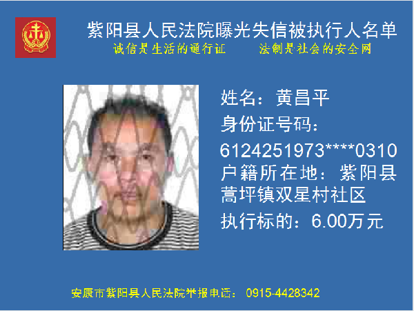 曝光失信 | 紫陽(yáng)縣人民法院:關(guān)于敦促黃昌平履行法定義務(wù)的公告