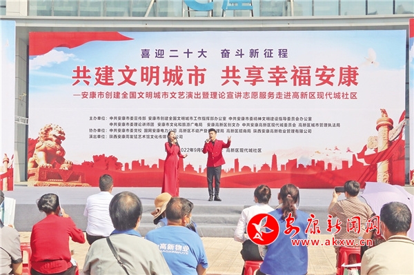 9月9日,一場(chǎng)以“共建文明城市,共享幸福安康”為主題的文藝演出和理論宣講活動(dòng)在高新現(xiàn)代城社區(qū)舉行。整場(chǎng)活動(dòng),除了有群眾喜聞樂(lè)見(jiàn)的文藝節(jié)目,還設(shè)置有創(chuàng)建知識(shí)問(wèn)答互動(dòng)和創(chuàng)文知識(shí)專題宣講?,F(xiàn)場(chǎng),志愿者們還熱情地向群眾發(fā)放印有創(chuàng)文內(nèi)容的宣傳冊(cè)、涼扇、垃圾袋等,大家紛紛贊揚(yáng):“形式生動(dòng)活潑,宣傳入腦入心!”
