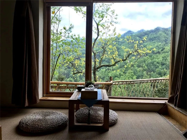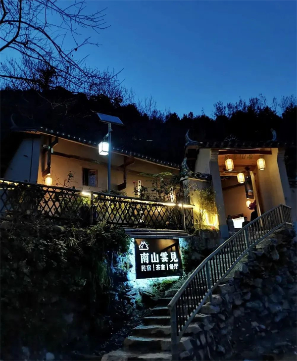 南山云見民宿共有11個陜南民居,集茶舍、住宿、餐廳、書院、美術(shù)館為一體,穿梭于鳳凰山中的康養(yǎng)文化健身步道,宛如一條絲線,串聯(lián)了大南溝的龍?zhí)?、龍隱谷、凈春山、講經(jīng)臺、逍遙石、明月寺、南山云見民宿等景點。