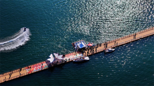 游客輾轉至瀛湖浮橋,水上運動中心也已喬遷至此。精彩刺激的水上項目,吸引了年輕人的極大興趣。水上摩托艇、水上陀螺、水上拖傘。以及靜態(tài)水域的水上滾筒、水上皮劃艇、水上手搖船,都成了游客今年第一次親水的最佳載體,怎一個酣暢了得。