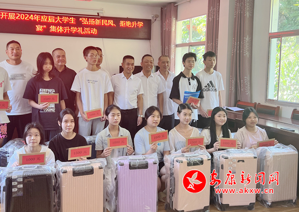 現(xiàn)場向8名2024年新錄取的大學(xué)生、6名新錄取的高中生發(fā)放了入學(xué)補(bǔ)助,駐村工作隊和村兩委共同向?qū)W生送上美好祝福。在省司法廳、鎮(zhèn)坪縣司法局的幫扶下,陽河村已連續(xù)7年向本村98名初、高中畢業(yè)生發(fā)放教育補(bǔ)助資金14.6萬元?!吧龑W(xué)宴”“無事酒”在村上銷聲匿跡,新民風(fēng)蔚然成風(fēng)。