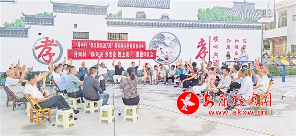 在今年的每一次道德評議會上,月河村干部和鄉(xiāng)賢能人都積極宣講村莊發(fā)展規(guī)劃以及孝善行為的重要性,宣講團成員詳細解讀孝義文化,帶動村民踴躍參與“五美庭院”創(chuàng)建。在此過程中,“說論亮”道德評議制度有效運行;“群眾說”讓大家暢所欲言,把村里的大小事擺到臺面;“鄉(xiāng)賢論”借助鄉(xiāng)賢的智慧與威望分析問題、化解矛盾;“榜上亮”則讓好與壞一目了然,便于群眾監(jiān)督。特別是,為激勵村民見賢思齊,學(xué)典型、爭先進、樹文明,月河村利用孝義文化長廊、宣傳欄、道德講堂等載體,把評選出來的道德典型事跡“上榜、上墻”,形成示范引領(lǐng)效應(yīng),讓良好道德品質(zhì)看得見、摸得著,進一步激發(fā)村民的主人翁意識,讓移風(fēng)易俗的觀念深入人心。