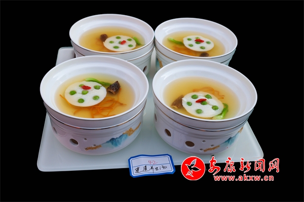 第二道菜品則是傳統(tǒng)與創(chuàng)新并蓄的蓮蓬養(yǎng)生湯。這道菜品主菜形似蓮蓬,不僅外觀精致高雅,而且湯鮮味美,營養(yǎng)豐富,每一口都蘊(yùn)含著廚師對食材的精心挑選和對烹飪技藝的極致追求。張顯峰最終憑借其精湛的廚藝和創(chuàng)新的菜品脫穎而出,榮獲一等獎,并被授予“陜南烹飪名師”的榮譽(yù)稱號。這不僅是對他個人技藝的肯定,更是對紫府壹號陜南文化主題餐廳及整個紫陽美食文化的極高贊譽(yù)。更是對紫陽美食文化的一次有力推廣。