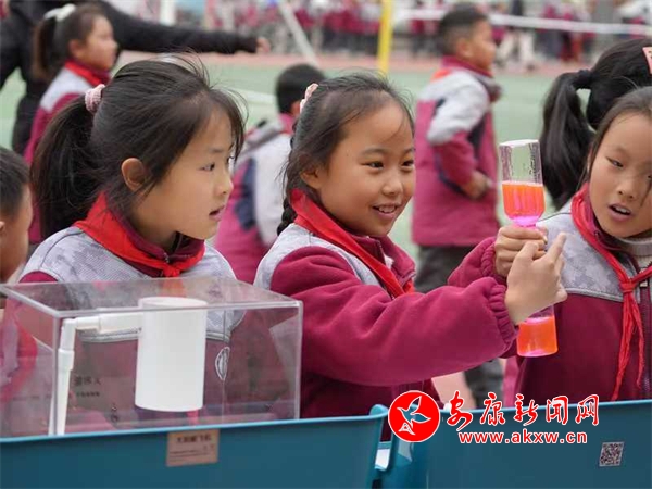 在各個科學(xué)實驗項目前,同學(xué)們駐足停留,認(rèn)真觀察、反復(fù)操作,沉浸在知識的海洋與科技的奧秘中,操場上不時傳來陣陣驚嘆聲。“我最感興趣的是機(jī)器人,通過手柄遙控能讓機(jī)器人模仿奔跑跳躍,跟我們打招呼,真是太神奇了,我以后要更加努力地學(xué)習(xí)科學(xué)知識,探索更多的未知領(lǐng)域?!蔽迥昙壱粚W(xué)生激動地說。