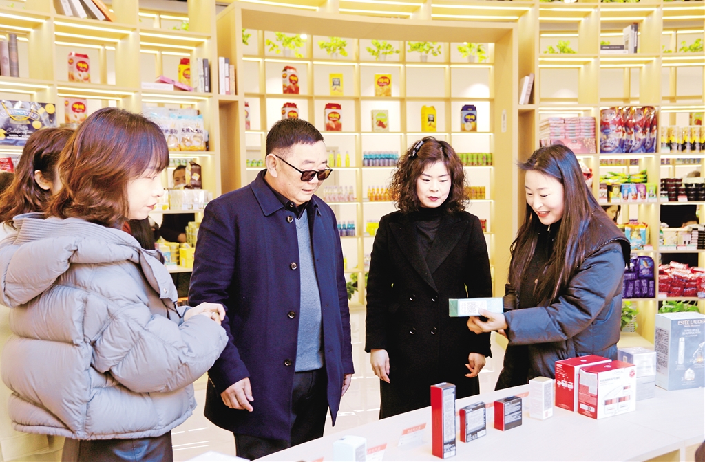 1月16日,市民在安康無水港進(jìn)出口商品展銷中心選購商品。 記者 魏濤 攝