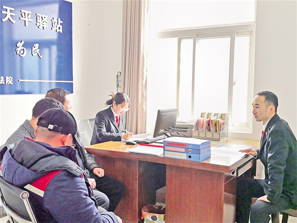 近年來,旬陽法院立足山區(qū)基層法院實際,在抓好人民法庭工作的基礎(chǔ)上,在法庭下轄鎮(zhèn)的村、社區(qū)設(shè)立“天平驛站”,安排法官定期輪值,及時響應(yīng)群眾訴求,實現(xiàn)矛盾糾紛一站式接收、一攬子調(diào)處、全鏈條閉環(huán)解決, 推動審判觸角向百姓“家門口”延伸。