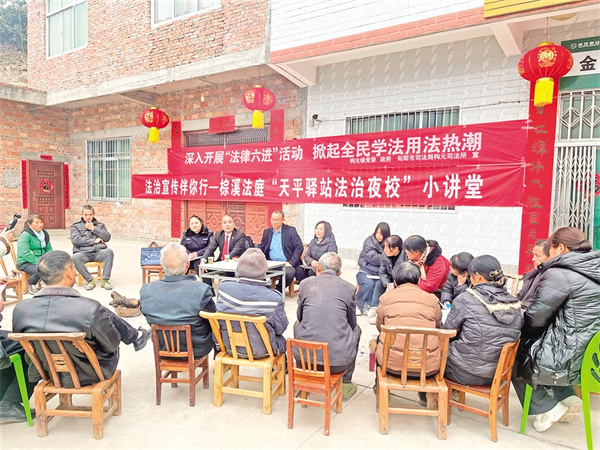 “兒媳婦在微信群罵我,能告她嗎?”“親戚貸款讓我擔(dān)保,會不會被坑?”……2月20日晚,棕溪法庭舉辦的“法治夜?!痹陉P(guān)口鎮(zhèn)關(guān)坪社區(qū)的“天平驛站”開講,30余名村民圍坐在一起認(rèn)真聽講,并踴躍發(fā)問。法官劉強結(jié)合《治安管理處罰法》《民法典》就農(nóng)村群眾普遍關(guān)心的熱點話題進行解析,同時播放方言普法短視頻進行普法宣傳。