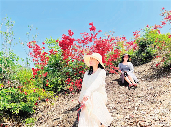 鰲頭村地處漩渦鎮(zhèn)南部,是鳳凰山深處的鄉(xiāng)村,距縣城約80公里,海拔與地形的獨(dú)特組合為野生杜鵑的生長提供了得天獨(dú)厚的條件。杜鵑花又被形象地稱為“映山紅”,從山腳望向山巔,火紅的花潮將青翠峰巒浸染成流動(dòng)的朱色云霞;登高遠(yuǎn)眺,花簇如星火燎原,從山腰向峰頂次第蔓延,與蒼勁的百年青松、繚繞的晨霧構(gòu)成水墨丹青般的意境。三五成叢的杜鵑花冠似漏斗,迎著春風(fēng)舒展,宛如山間躍動(dòng)的火焰。據(jù)當(dāng)?shù)卮迕窠榻B,這里的杜鵑以深紅色為主,是大自然賦予的“原生態(tài)調(diào)色盤”,僅生長于鰲頭山脈特定區(qū)域,花期可持續(xù)至五月初。