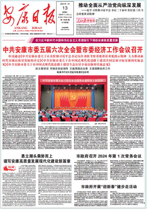 (2024年1月13日安康日報(bào)01版報(bào)道“中共安康市委五屆六次全會暨市委經(jīng)濟(jì)工作會議召開”)
