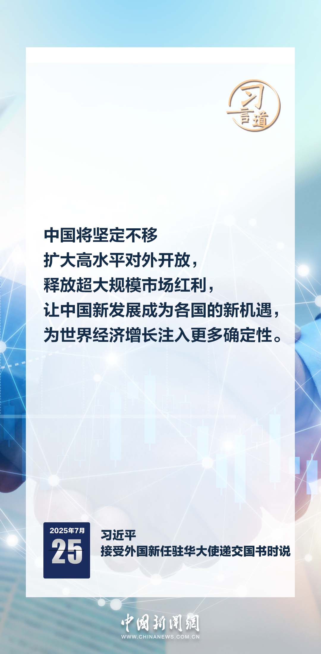 7月25日,國(guó)家主席習(xí)近平在北京人民大會(huì)堂接受16位駐華大使遞交國(guó)書。儀式結(jié)束后,習(xí)近平在北京廳對(duì)使節(jié)們發(fā)表講話。習(xí)近平指出——