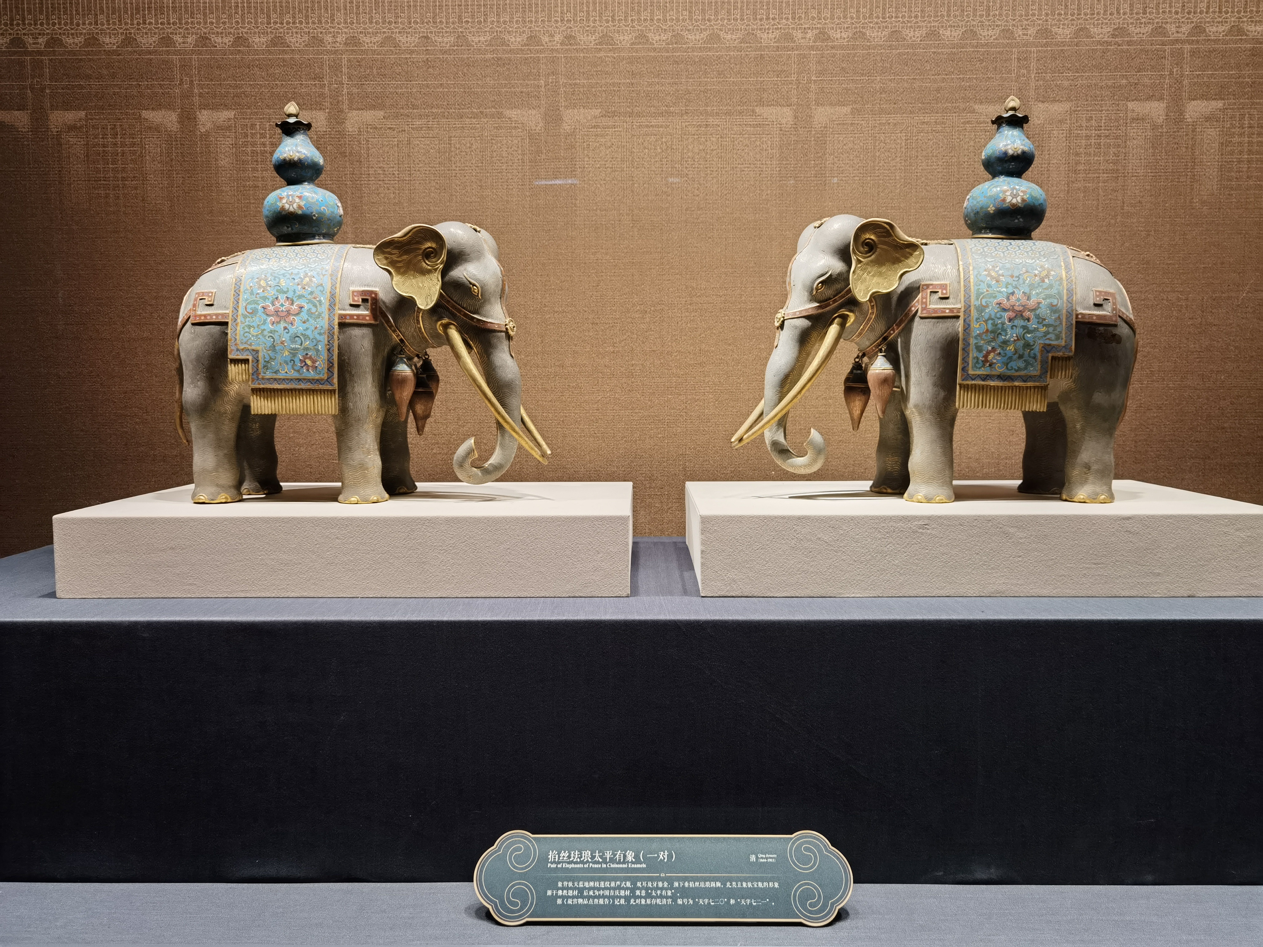 △故宮展出的掐絲琺瑯太平有象。(總臺(tái)央視記者程愛華拍攝)