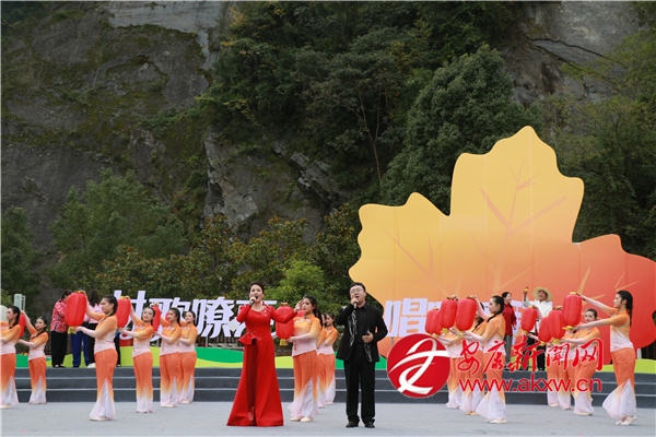 金秋時(shí)節(jié)的茨溝鎮(zhèn),萬畝紅葉、層林盡染。伴隨著歡快的鑼鼓聲,茨溝鎮(zhèn)、五里鎮(zhèn)、譚壩鎮(zhèn)三支隊(duì)伍輪番登場,不僅獻(xiàn)唱原創(chuàng)村歌,還展示特色產(chǎn)業(yè)、優(yōu)質(zhì)資源與地方文化,紛紛亮出獨(dú)具特色的“看家絕活兒”。歌伴舞《村歌飛揚(yáng)》《松壩謠》《幸福歌兒唱起來》唱出了鄉(xiāng)親們的幸福生活;以修建八一水庫為背景的安康歌謠《我來了》引發(fā)會場共鳴;民俗表演《龍的傳人》則將節(jié)目推向高潮。舞蹈、鄉(xiāng)村T臺秀、民俗表演、八岔戲等節(jié)目,或以傳統(tǒng)幽默詼諧的風(fēng)格,或以深情敘述的方式,展現(xiàn)鄉(xiāng)村新生活,為觀眾獻(xiàn)上一場別開生面的視聽盛宴,現(xiàn)場歡呼聲此起彼伏。