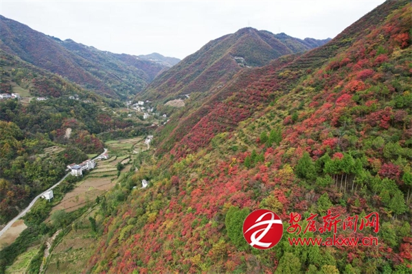 初冬時節(jié),地處秦嶺南麓的漢濱區(qū)早陽鎮(zhèn)境內(nèi),滿山的紅葉把山村裝扮得美如一幅畫,引得眾多游客和市民來這里賞紅葉、觀美景,盡享生態(tài)之美。圖為無人機(jī)視角下的早陽紅葉美景。 (通訊員 周濤)
