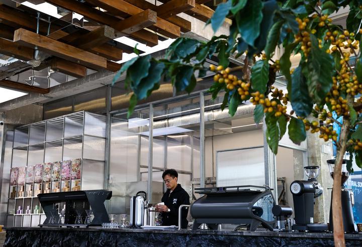 2025年12月10日,旅居云南的韓君瑋在位于昆明的南來(lái)盛咖啡店內(nèi)制作咖啡。韓君瑋自清華大學(xué)畢業(yè)后,已在咖啡行業(yè)耕耘十余年。2024年,他受聘成為云南一家老字號(hào)咖啡品牌的品牌總顧問(wèn),從此投身到云南咖啡的產(chǎn)品研發(fā)和品牌推廣工作中。一年多來(lái),他每月都會(huì)來(lái)到昆明,短則幾天,長(zhǎng)則數(shù)周,開(kāi)啟了一種“半旅居、半工作”的生活模式?!霸颇巷L(fēng)景優(yōu)美、氣候宜人,我很享受這樣的狀態(tài)?!表n君瑋說(shuō)。