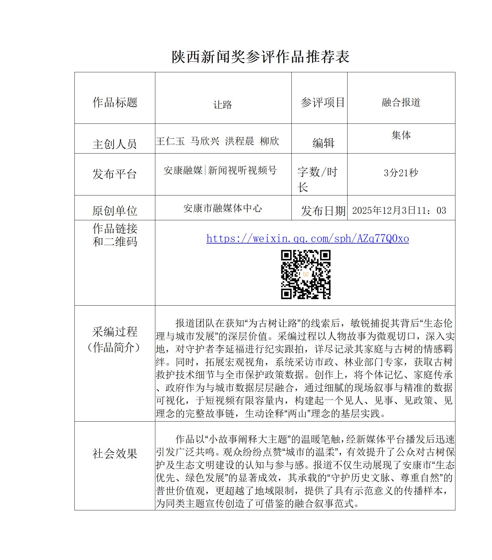安康市融媒體中心關(guān)于2025年度陜西新聞獎融合傳播類參評作品的公示