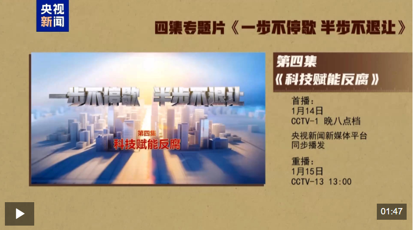 《一步不停歇 半步不退讓》第四集《科技賦能反腐》,敬請關注。