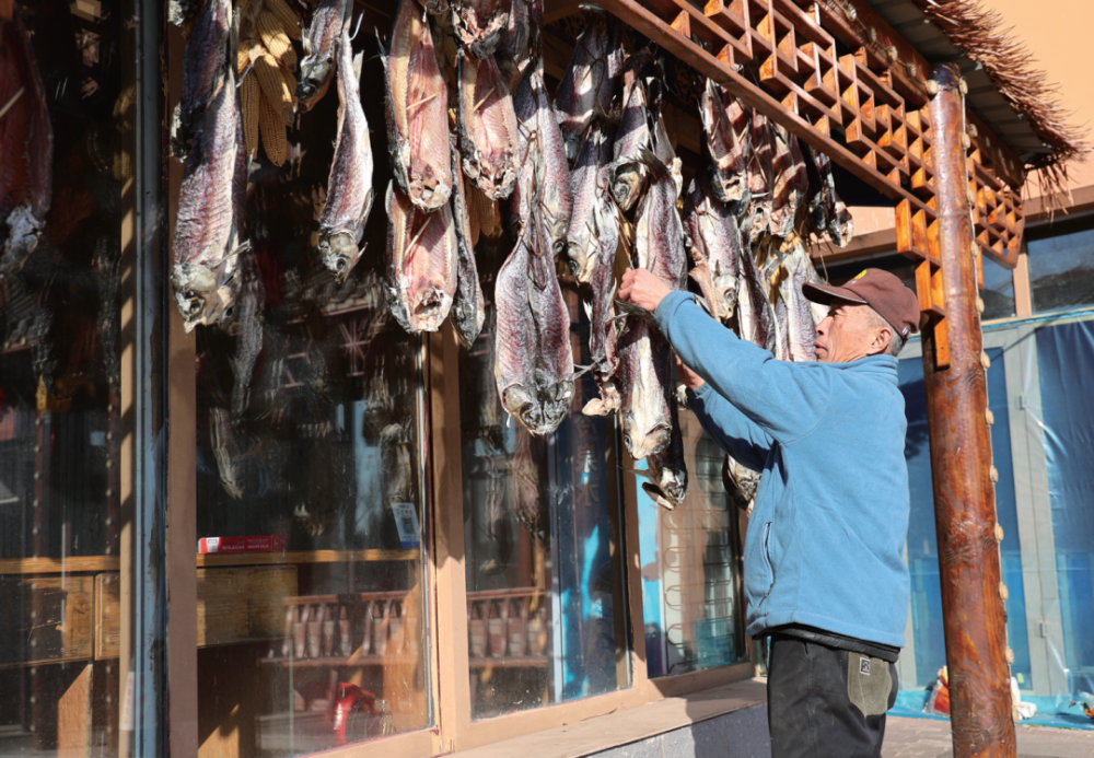 ??2025年11月22日,查干湖畔一家農(nóng)家樂的老板在曬魚干。從整條鮮魚到分割魚,從線下到線上,查干湖的“魚產(chǎn)業(yè)”年年攀新高,2023年、2024年銷售額均在5000萬元以上。