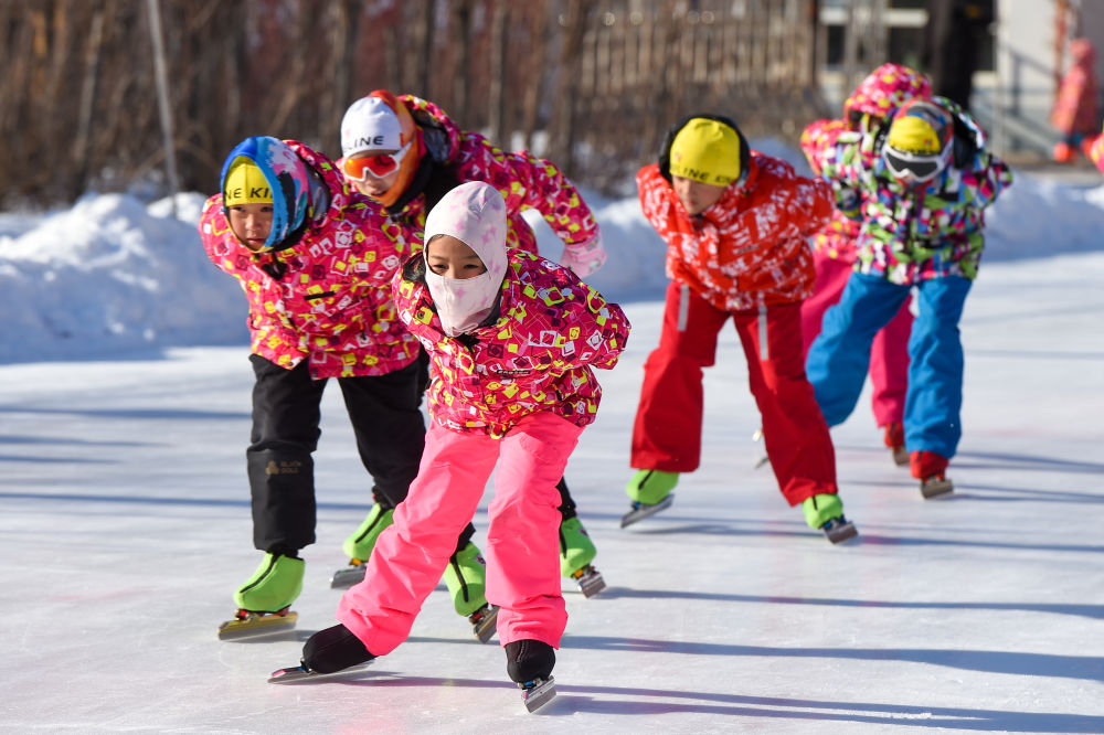 ?? 1月13日,在吉林省四平市六馬路小學(xué),學(xué)生們在冰場上滑行。新華社記者 張楠 攝