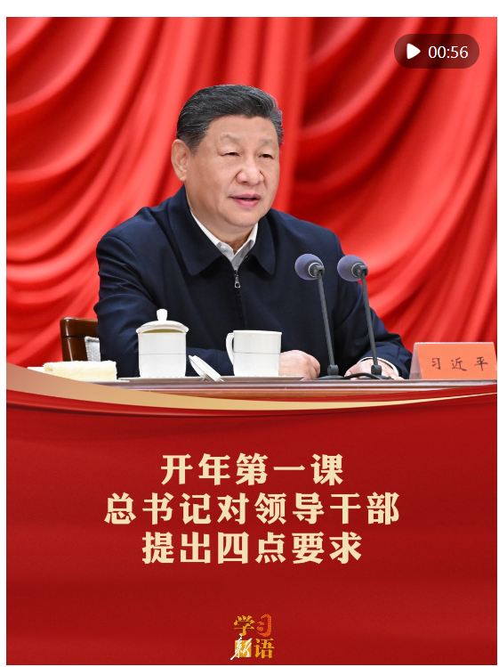 1月20日,習(xí)近平總書記在省部級(jí)主要領(lǐng)導(dǎo)干部學(xué)習(xí)貫徹黨的二十屆四中全會(huì)精神專題研討班開班式上發(fā)表重要講話,對(duì)各級(jí)干部特別是領(lǐng)導(dǎo)干部提出四點(diǎn)要求。一起學(xué)習(xí)領(lǐng)會(huì)。