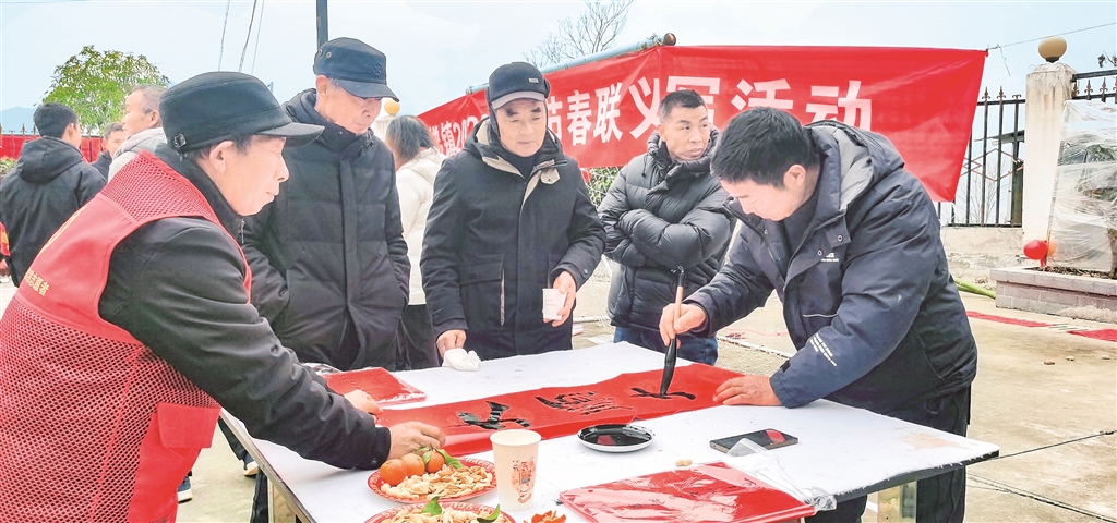 “‘村晚’既注重豐富群眾的文化生活,也著力帶動(dòng)村民增收?!睏羁艽灏?lián)干部、石梯鎮(zhèn)農(nóng)村農(nóng)業(yè)中心主任王化澎介紹了活動(dòng)的初衷。現(xiàn)場(chǎng)設(shè)置的送春聯(lián)區(qū),書法愛好者揮毫潑墨,一副副對(duì)聯(lián)、一個(gè)個(gè)“?!弊直淮迕裥老步舆^;就業(yè)推薦區(qū)前,大家認(rèn)真查看《漢濱區(qū)2026年用工單位招聘崗位需求表》,挑選心儀崗位;農(nóng)副產(chǎn)品展銷區(qū),農(nóng)家自產(chǎn)的紅薯、蔬菜,自制的豆腐乳、醪糟、變蛋等,吸引了眾多來自安康中心城區(qū)的市民爭(zhēng)相搶購。