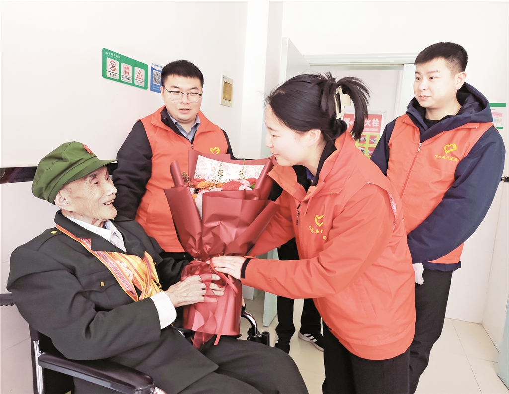 活動現(xiàn)場暖意融融,志愿者圍在老人身邊,促膝長談、噓寒問暖,細心詢問其飲食起居和身體狀況,認真傾聽那段浴血奮戰(zhàn)的革命故事。“老人飲食清淡,精神狀態(tài)一直很好。”護理人員李娟介紹,老人性格開朗,時常給大家講述戰(zhàn)場事跡,傳遞著滿滿的正能量。