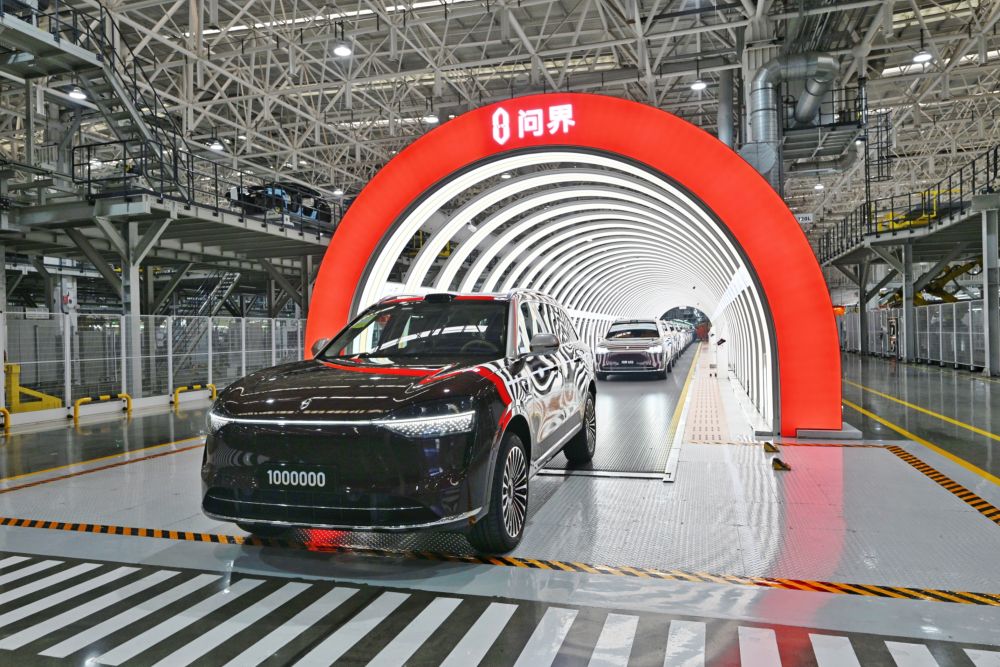 全國(guó)兩會(huì)前夕,重慶兩江新區(qū)賽力斯超級(jí)工廠內(nèi),第100萬(wàn)輛整車駛下產(chǎn)線。