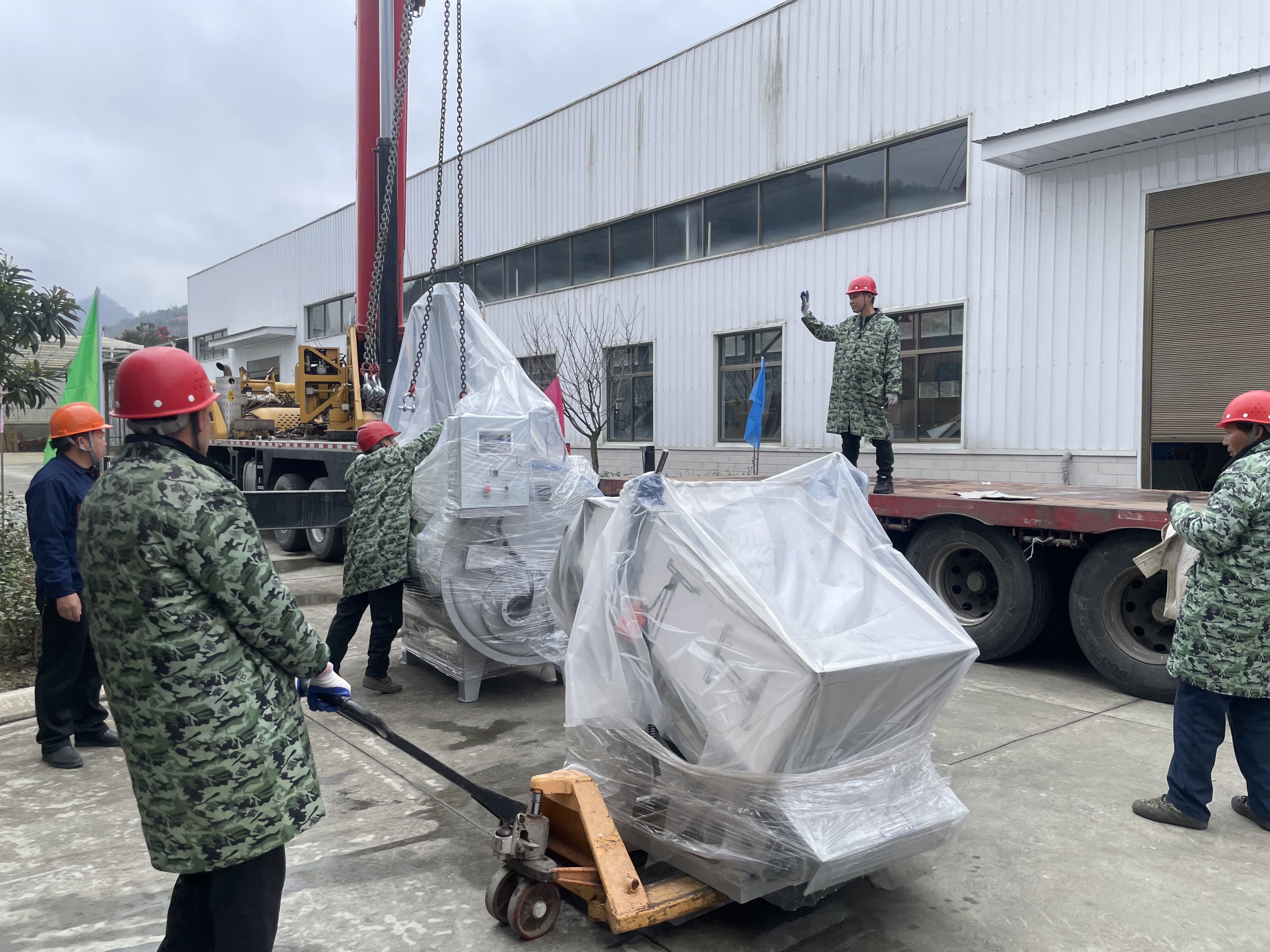 走進平利硒地抹茶茶業(yè)有限公司廠區(qū),一派繁忙景象映入眼簾:滿載設(shè)備的大型貨車緩緩駛?cè)?,吊車揮臂起吊,工人們協(xié)同搬運,一件件精密設(shè)備被精準定位。從入場指引到吊裝作業(yè),再到設(shè)備擺放,各環(huán)節(jié)環(huán)環(huán)相扣、井然有序。