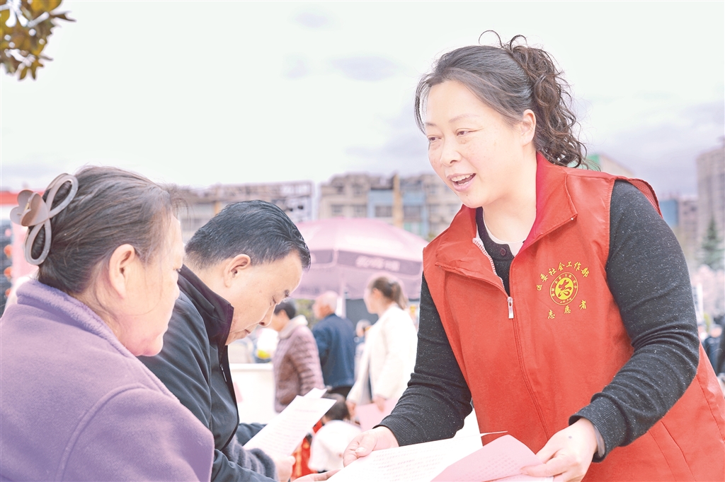 “今天的表演到此結(jié)束,感謝所有觀眾朋友們的陪伴,祝大家新春快樂,我們下次再見!”隨著舞臺上主持人話音落下,一場惠民文藝演出正式落幕。觀眾張大媽緩緩起身準備離場,一抹抹鮮亮的“志愿紅”便主動迎了上來。“阿姨,新年好!我給您送份‘特殊年禮’,幫您守住錢袋子、過個安心年?!泵鎸τ孀邅淼膹埓髬?,身穿紅馬甲的志愿者笑著遞上一張防詐騙宣傳頁?!斑@姑娘真會說話,你送的這份‘禮’,姨收下啦!”看著眼前機靈又貼心的小姑娘,張大媽滿心暖意,雙手接過宣傳頁認真翻閱起來。