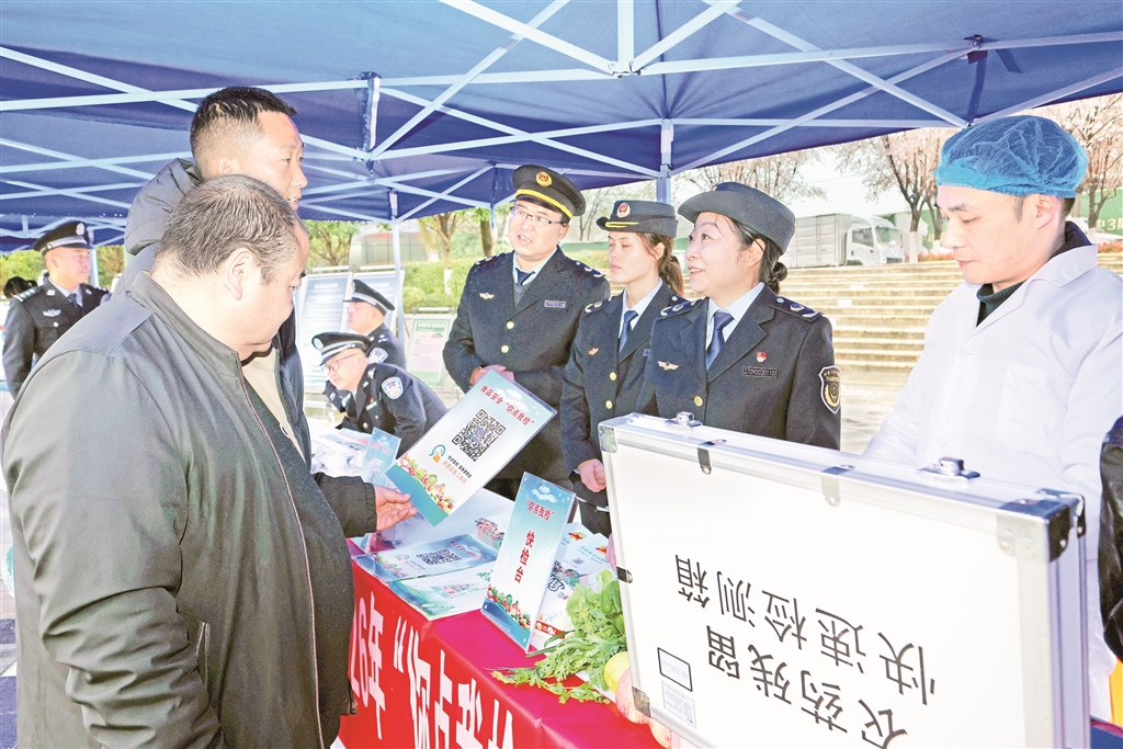 3月14日,在2026年陜西省“3·15”國(guó)際消費(fèi)者權(quán)益日主題活動(dòng)暨安康市“3·15”集中宣傳活動(dòng)中,市場(chǎng)監(jiān)管執(zhí)法人員正在宣傳講解農(nóng)殘監(jiān)測(cè)。