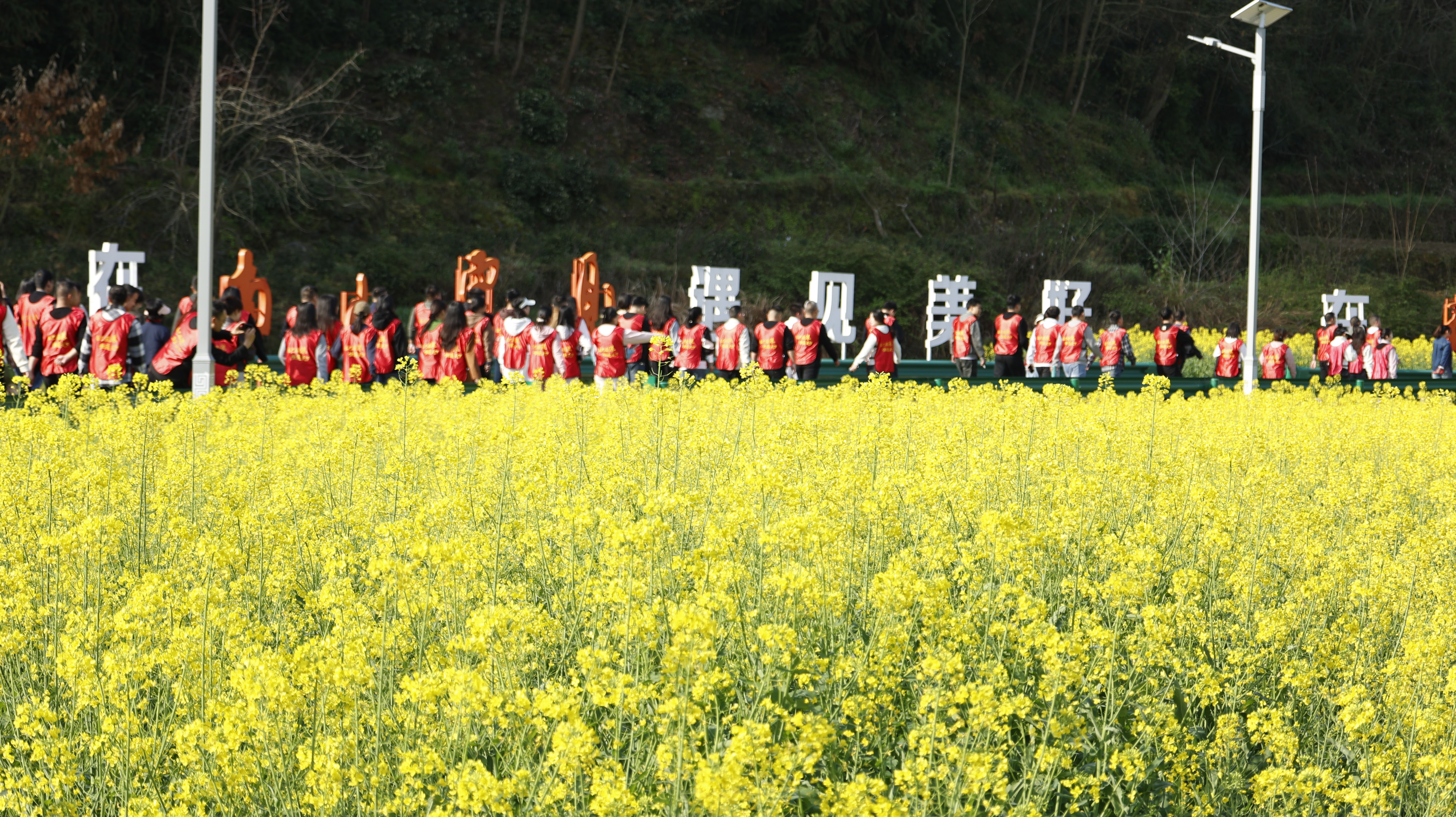 健步走結(jié)束后,啟動儀式正式拉開帷幕?,F(xiàn)場舉行了文旅推介,別出心裁地將安康民歌融入其中,悠揚(yáng)的歌聲在花海間回蕩。隨后的歌曲演唱、毛絨玩具互動等環(huán)節(jié)輪番上演,整個活動現(xiàn)場以油菜花海為天然背景,陽光燦爛,春光明媚,歡聲笑語此起彼伏。活動最后,為健步走獲獎職工舉行了頒獎儀式。
