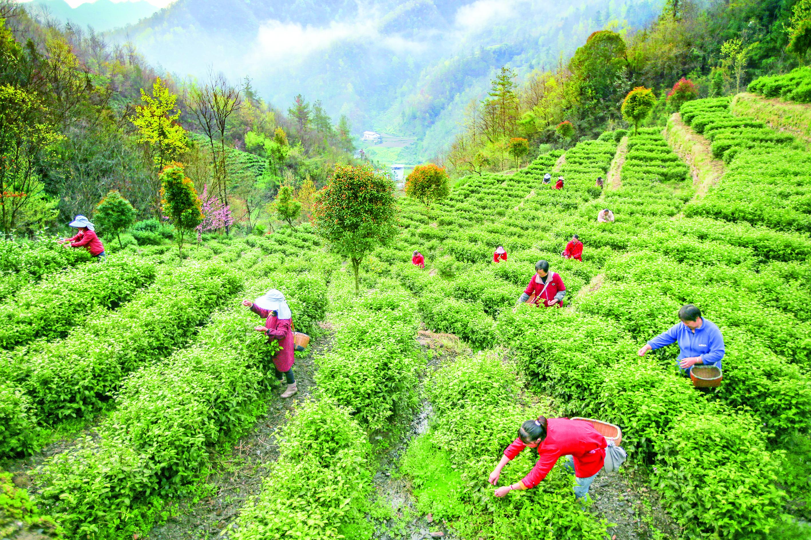 時下正值采茶高峰期,在白河縣宋家鎮(zhèn)雙喜村茶園內,茶農們正搶抓農時采摘春茶。據了解,今年該村春茶產量有所提高、質量也更優(yōu)良,預計整個春茶采摘期持續(xù)1個月,全村今年春茶預計產量為20余萬斤,產值約6000萬元。 趙久剛 攝