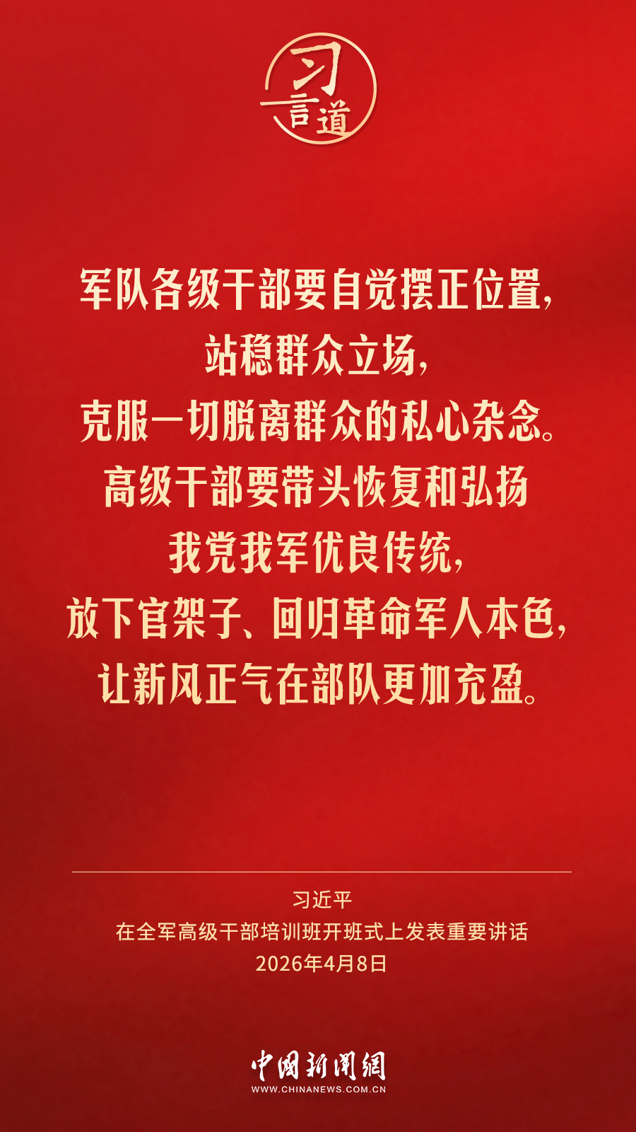 全軍高級干部培訓班8日在國防大學開班。中共中央總書記、國家主席、中央軍委主席習近平出席開班式并發(fā)表重要講話。他強調——