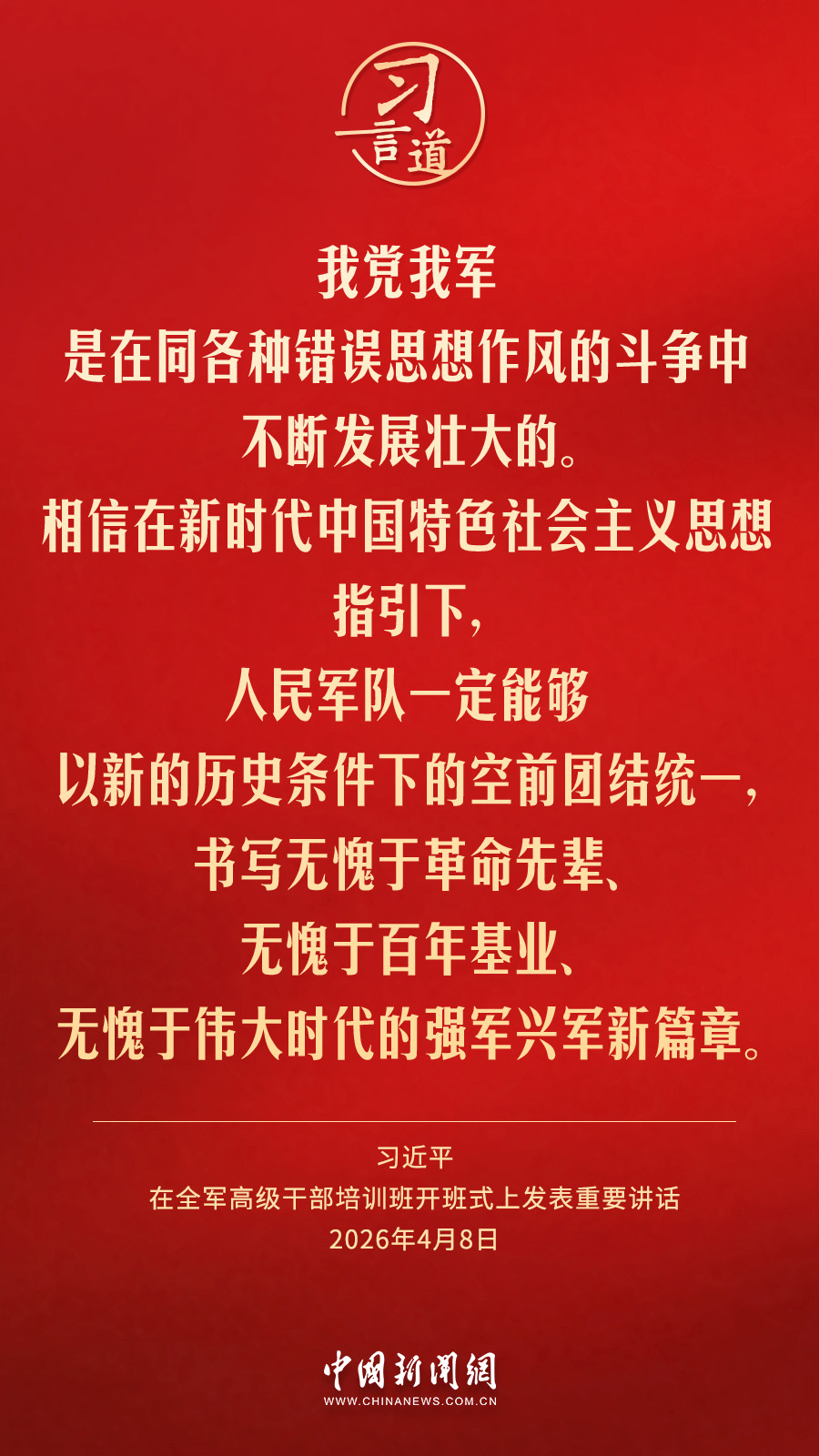 全軍高級干部培訓(xùn)班8日在國防大學(xué)開班。中共中央總書記、國家主席、中央軍委主席習(xí)近平出席開班式并發(fā)表重要講話。他強(qiáng)調(diào)——