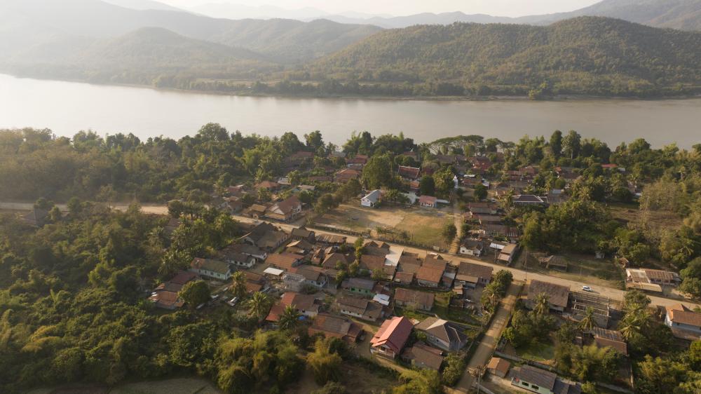 老撾瑯勃拉邦省瑯勃拉邦市聽松村全貌(無人機(jī)照片)。新華社發(fā) 杜大鵬 攝