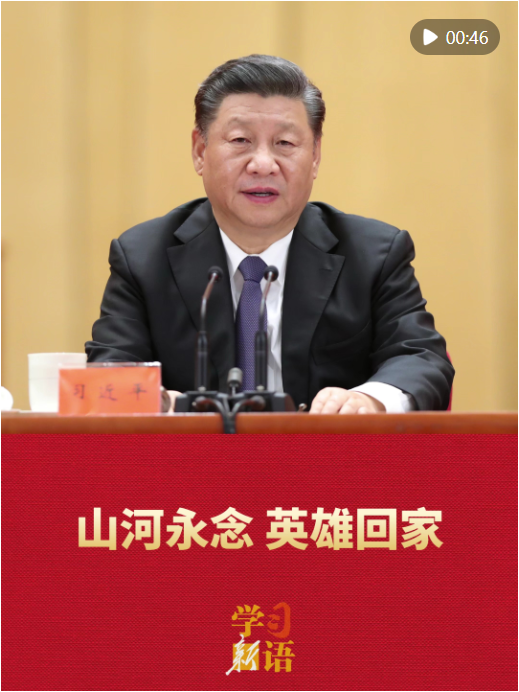 “我們始終沒有忘記在抗美援朝戰(zhàn)爭中英勇犧牲的烈士們。”4月22日,第十三批在韓中國人民志愿軍烈士遺骸回國。讓我們重溫習(xí)近平總書記飽含深情的話語,銘記歷史,緬懷英烈。