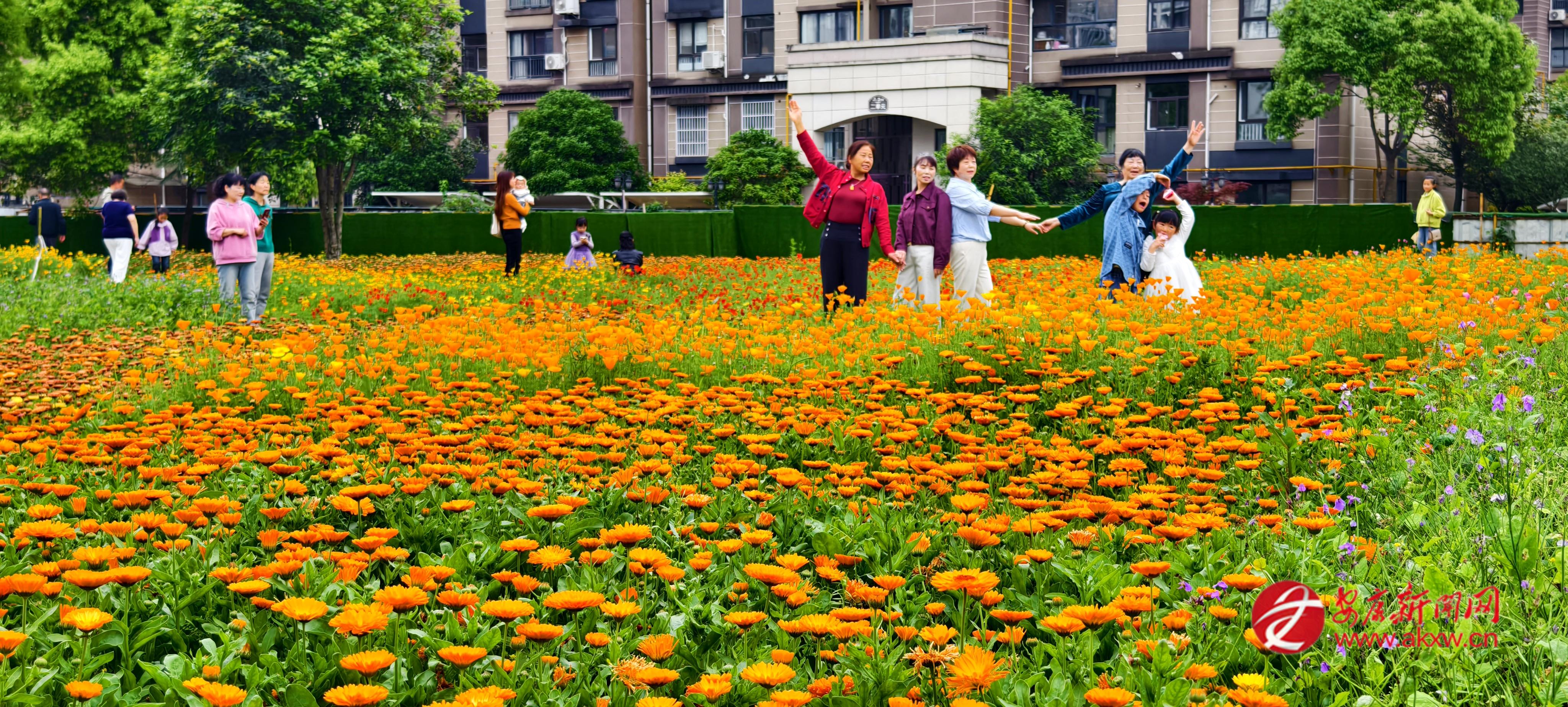 近日,在漢陰縣三沈文化產(chǎn)業(yè)園,成片的二月蘭、花菱草與金盞菊迎來盛花期。市民們漫步花海欣賞美景、拍照打卡,享受休閑時(shí)光。王磊 攝