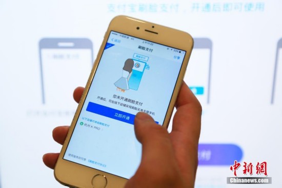 9月19日,刷臉支付需要先在支付寶APP上開通該項(xiàng)服務(wù)。近日,支付寶在杭州一家餐廳首次推出刷臉支付服務(wù),用戶開通該項(xiàng)功能后只需綁定手機(jī)號,通過支付平臺刷臉即可完成交易,再也無須擔(dān)心付款時手機(jī)沒電或者忘帶的尷尬。中新社記者 王遠(yuǎn) 攝