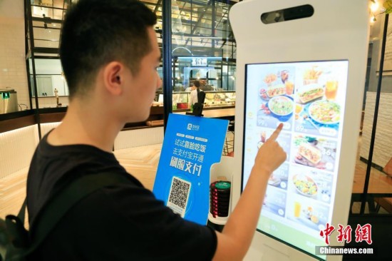 9月19日,顧客正在餐廳自助點(diǎn)餐。近日,杭州一家餐廳首次推出刷臉支付服務(wù),用戶開通該項(xiàng)功能后只需綁定手機(jī)號,通過支付平臺刷臉即可完成交易,再也無須擔(dān)心付款時手機(jī)沒電或者忘帶的尷尬。中新社記者 王遠(yuǎn) 攝