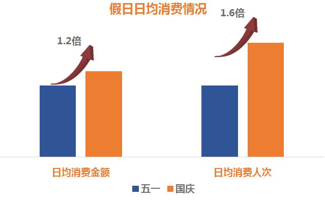 今年國慶中秋,與五一相比,長假帶來的消費熱潮更熱烈,日均旅游消費金額為五一的1.2倍,日均旅游消費人次為五一的1.6倍。