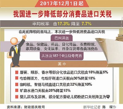 以2017年12月1日施行的稅收調(diào)整來說,財政部相關(guān)負(fù)責(zé)人指出,降低關(guān)稅為擴(kuò)大消費(fèi)品進(jìn)口、降低消費(fèi)品進(jìn)口成本創(chuàng)造了有利的條件。降低消費(fèi)品關(guān)稅釋放出擴(kuò)大消費(fèi)品進(jìn)口的積極信號。