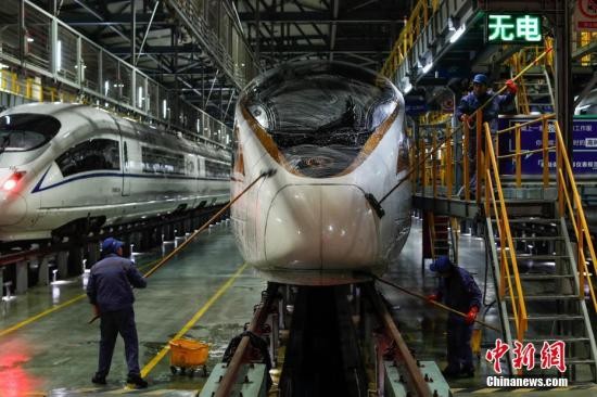 圖為工作人員對(duì)車頭進(jìn)行人工精洗。 張亨偉 攝