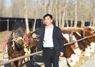 | 全國人大代表吳云波是內蒙古自治區(qū)扎魯特旗巴彥塔拉蘇木東薩拉嘎查黨支部書記。2013年起,吳云波組建合作社,吸收農牧民加入。目前合作社總資產達到3400萬元,2017年凈利潤360萬元,帶動37戶貧困戶穩(wěn)定脫貧。這是吳云波在合作社養(yǎng)殖基地(2月25日攝)。 |