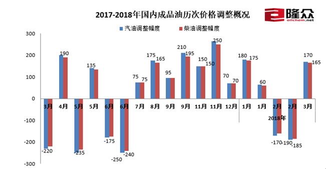 人民網北京3月28日電 (朱江)今日,記者從隆眾、卓創(chuàng)社會監(jiān)測機構獲悉,3月29日零時將上調汽柴油限價,每噸汽油上調170、柴油上調165元,折合每升89#0.13、92#0.13、95#0.14、0#0.14元。隆眾原油分析師李彥表示,本次調價是今年第三次上調,本次調價過后,2018年成品油調價將呈現“三漲兩跌一擱淺”的格局。