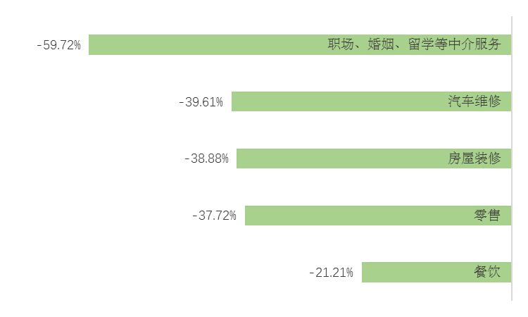 兩會召開期間(3月3日至3月20日),全國價格舉報受理量保持平穩(wěn),市場價格秩序良好。其中,民生服務(wù)類價格問題受理案件與歷史同期相比減少33.03%,與上月相比減少23.46%。其中,同比下降最多的五個行業(yè)是職場婚姻留學(xué)等中介服務(wù)、汽車維修、房屋裝修、商品零售與餐飲,跌幅分別為-59.72%、-39.61%、-38.88%、-37.72%、-21.21%。2Yd安康新聞網(wǎng)