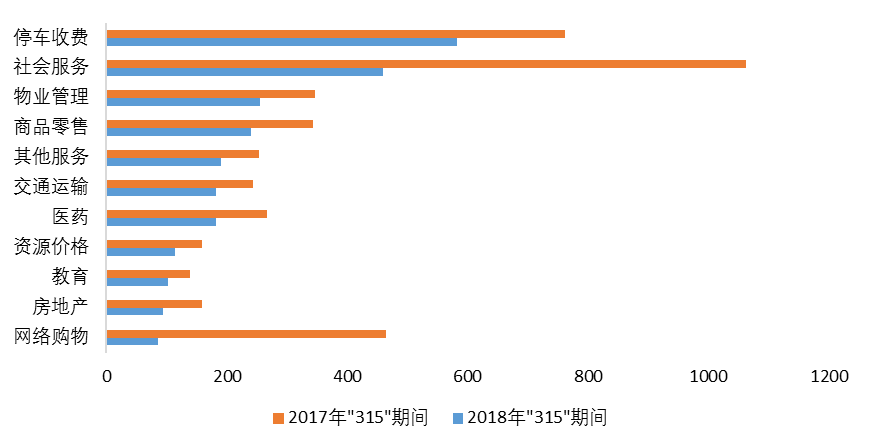 從熱點行業(yè)分布來看,“3·15”期間停車收費、社會服務(wù)、物業(yè)管理、商品零售等行業(yè)位居前列;與2017年同期相比,網(wǎng)絡(luò)購物、社會服務(wù)和房地產(chǎn)等行業(yè)受理量下降幅度較大。2Yd安康新聞網(wǎng)