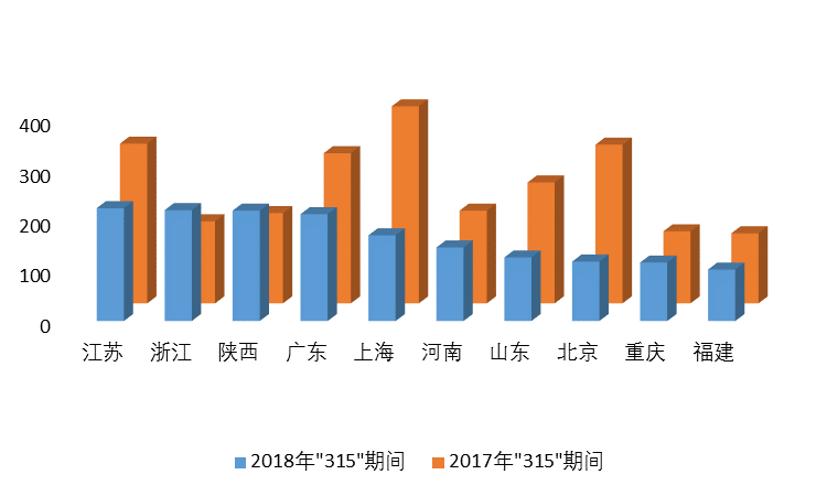 從地區(qū)受理量來看,和近兩年“3·15”期間平臺受理數(shù)據(jù)對比發(fā)現(xiàn),江蘇、上海、北京和廣東等地受理量均較去年同期下降明顯,浙江、陜西、河北和四川等地受理量均較去年有所增長。2Yd安康新聞網(wǎng)