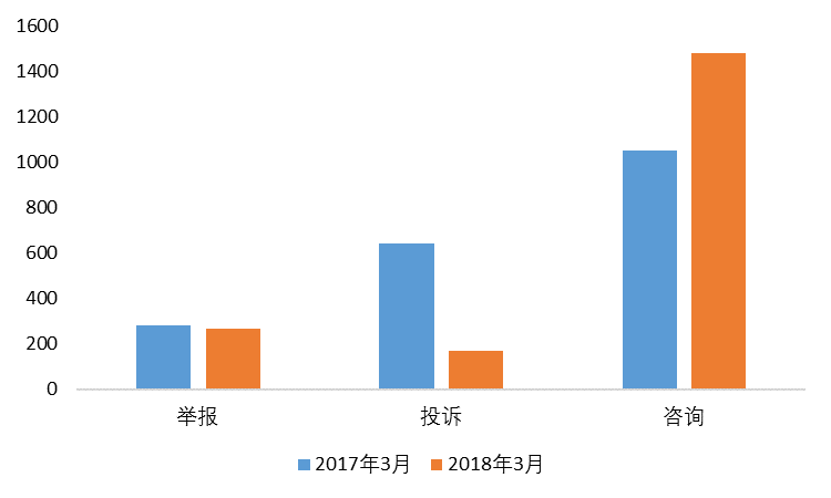報告顯示,2018年3月平臺共受理價格舉報、投訴、咨詢共計 51432件,環(huán)比上升12.9%,同比下降40.5%,主要是由于網(wǎng)購行業(yè)舉報受理量同比下降85%。其中,價格舉報6941件,環(huán)比上升20%;價格投訴5091件,環(huán)比上升0.4%;價格咨詢39400件,環(huán)比上升13.5%。2Yd安康新聞網(wǎng)